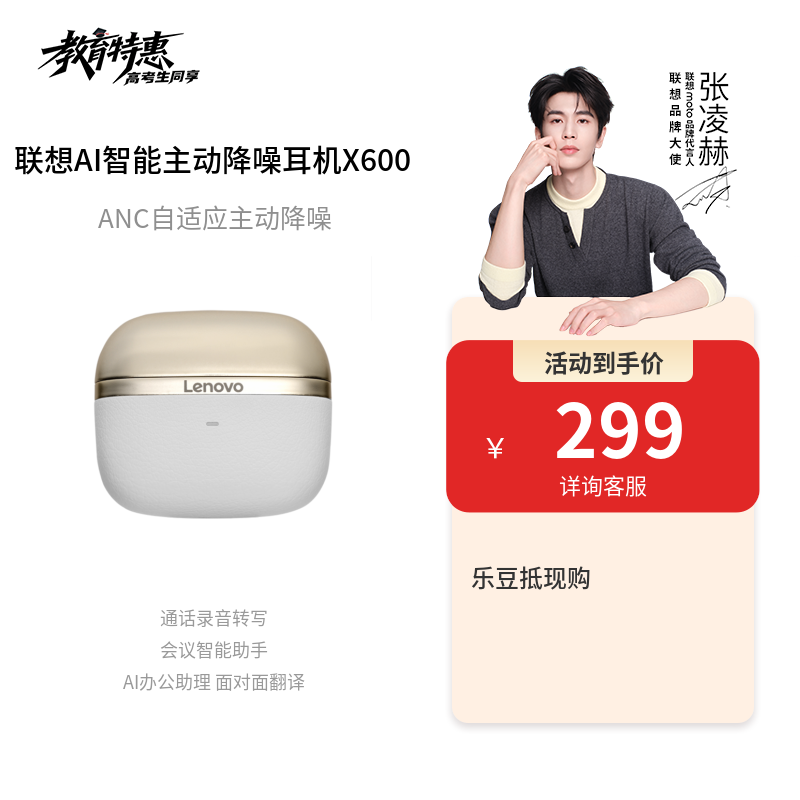 联想AI智能主动降噪耳机 X 600 曜石金