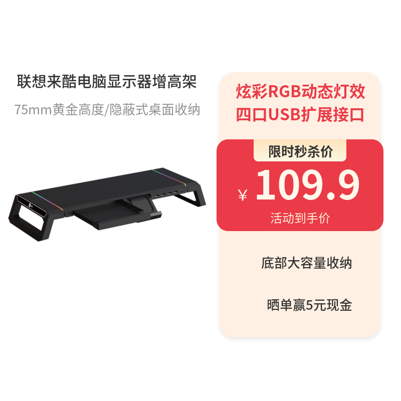 联想来酷 笔记本电脑显示器增高架 扩展收纳炫彩灯效