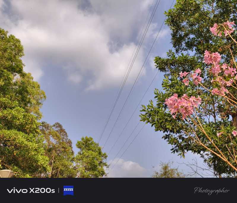 几点胭脂染碧空,千红万紫各春风。