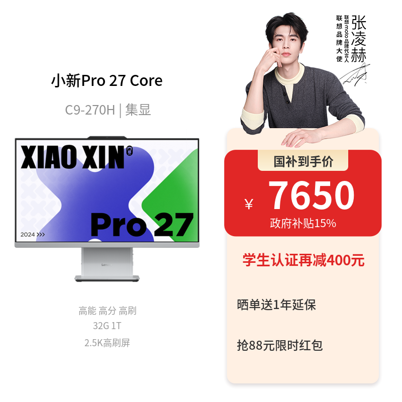 【2.5K高刷屏】联想小新Pro 27 Core 9臻彩高分一体电脑 云影色