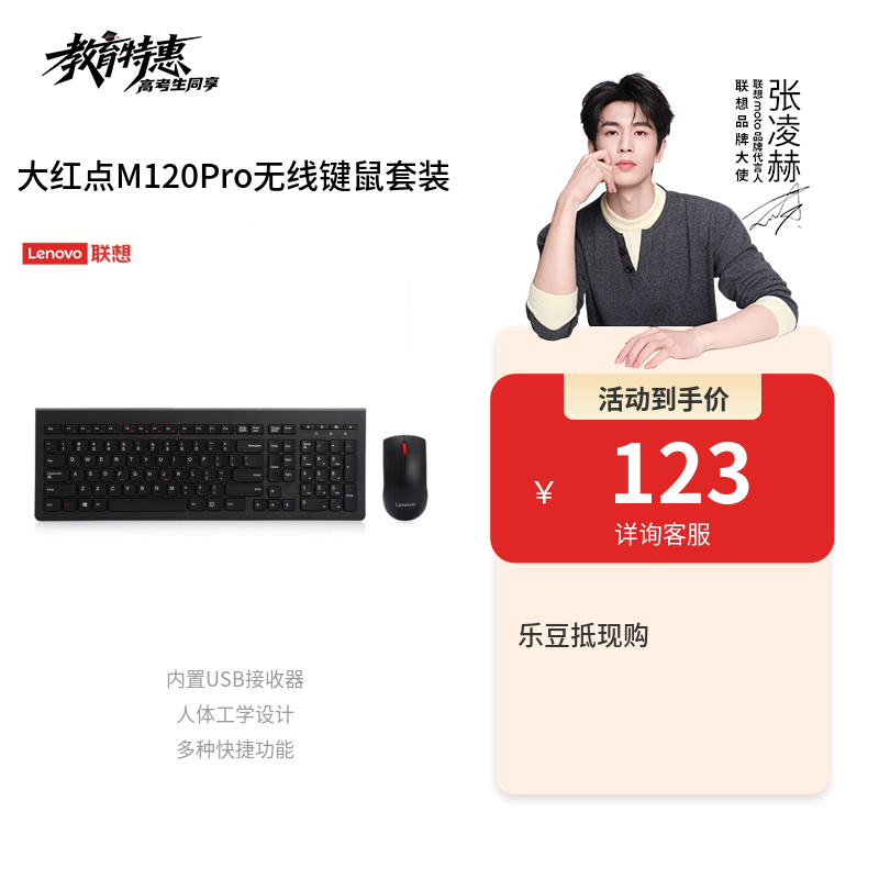 【防水防溅】联想大红点M120Pro无线键盘鼠标套装电脑笔记本键盘
