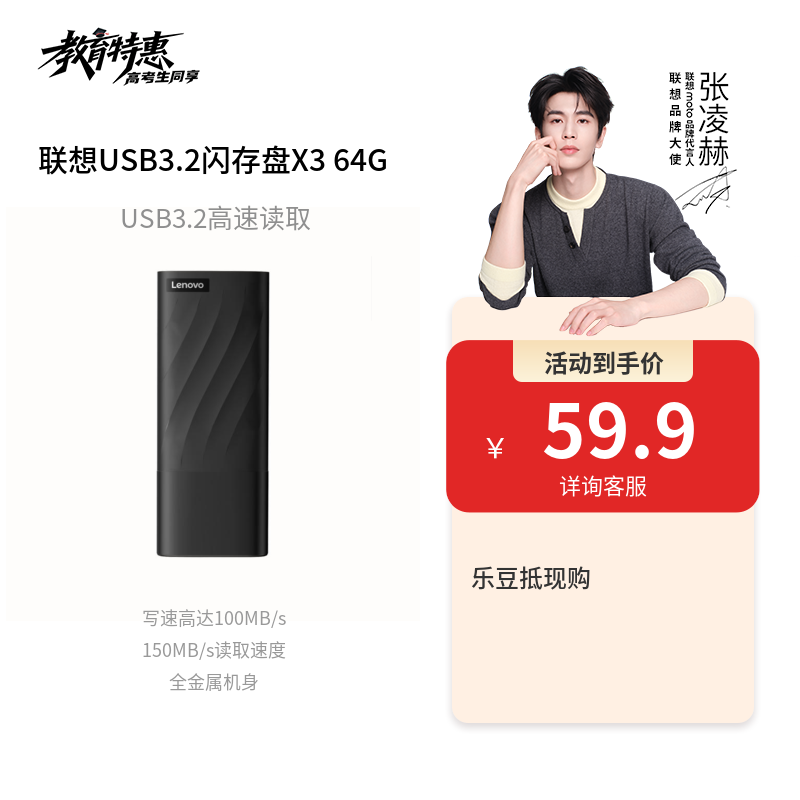 【高速读取】联想USB3.2闪存盘X3 64G大容量U盘车载办公小巧迷你